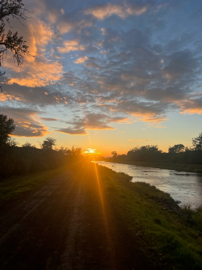 Nature–teacher, healer, muse–has given me moments of peace and a place to ugly cry. I’m so thankful for the respite from grief and a way to channel it too. Sounds of birds, the noise the water makes as it flows over each section of the channel, the rhythmic pace of my feet on the path soothe my soul. And of course I text friends and family images that fill my heart because I want to share those moments. I am in solitude and I am in community. I have watched the changes over the course of seasons and thanks to herds of goats. I have seen blue herons, pelicans, birds of prey, ducks, and geese, dogs of every shape and size, and even one river otter. Lines and color, shadow and light, teach me to be a better artist, too.