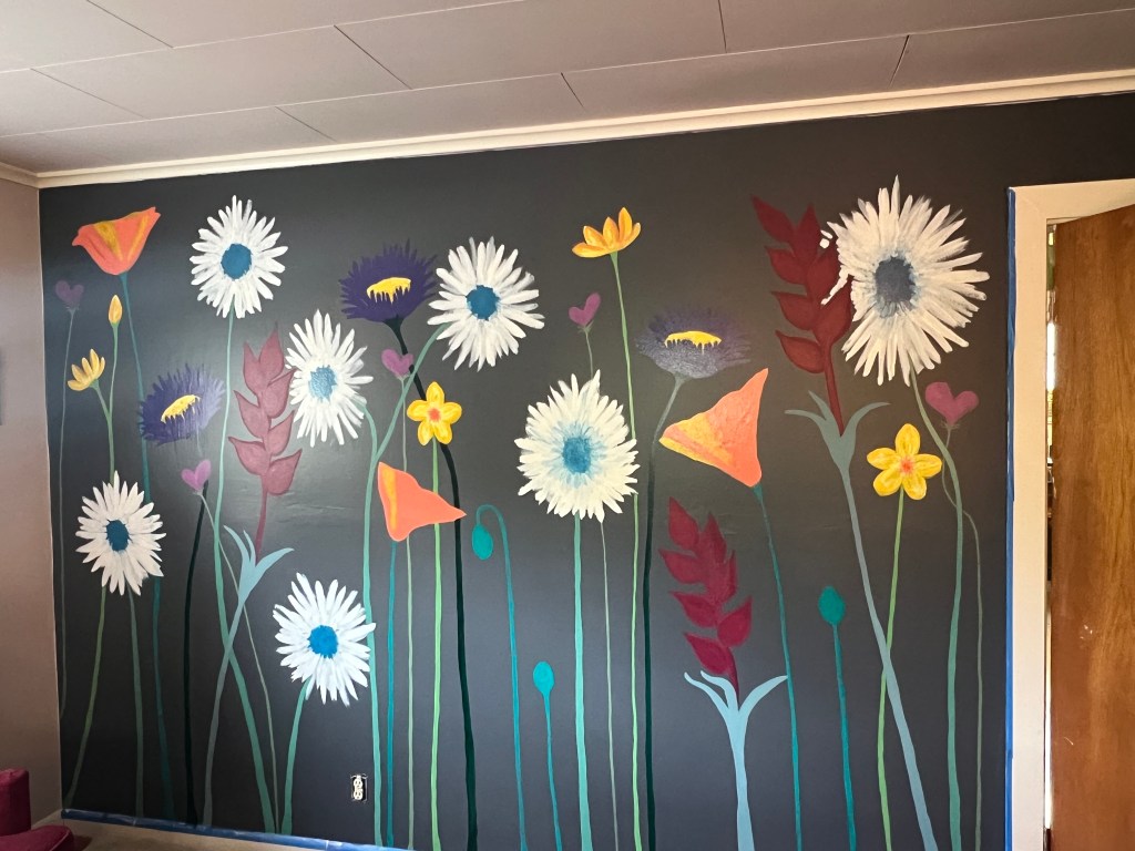 More recently, I’ve been able to witness my cousin and her husband take a rough and abused house and grounds and convert them into the promise of something magical, much like the garden Mary Lennox discovers on her uncle’s property. Their sweat, tears, and laughter (and including a novice like me) ensure this will be a wondrous, welcoming place. In the process of watching the transformation of a wreck into a home, I’ve been inspired to do a small DIY project of my own. After Bryan passed, I moved my bedroom into what was once the office-catch-all-pantry-whatever room. One wall had a lot of patches and holes and needed some TLC. I knew I wanted to do something different, creative, floral, but it was just an idea until recently.